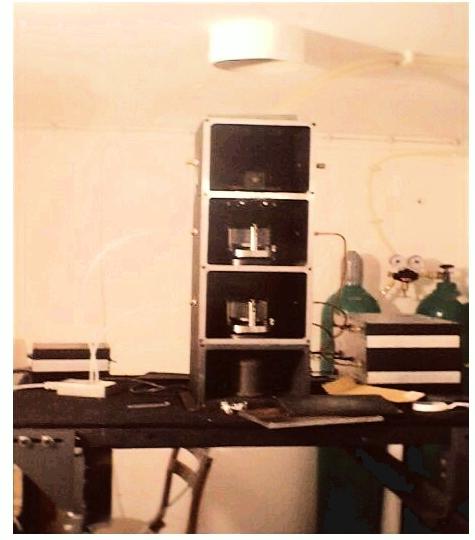 Mechanical layout of the spectrometer includes two pressure chambers, filter and camera lens housings above a stable frame. CCD camera dewar goes under the chambers. There are vacuum and pressure tight windows between the sides of the chambers on the optical path.